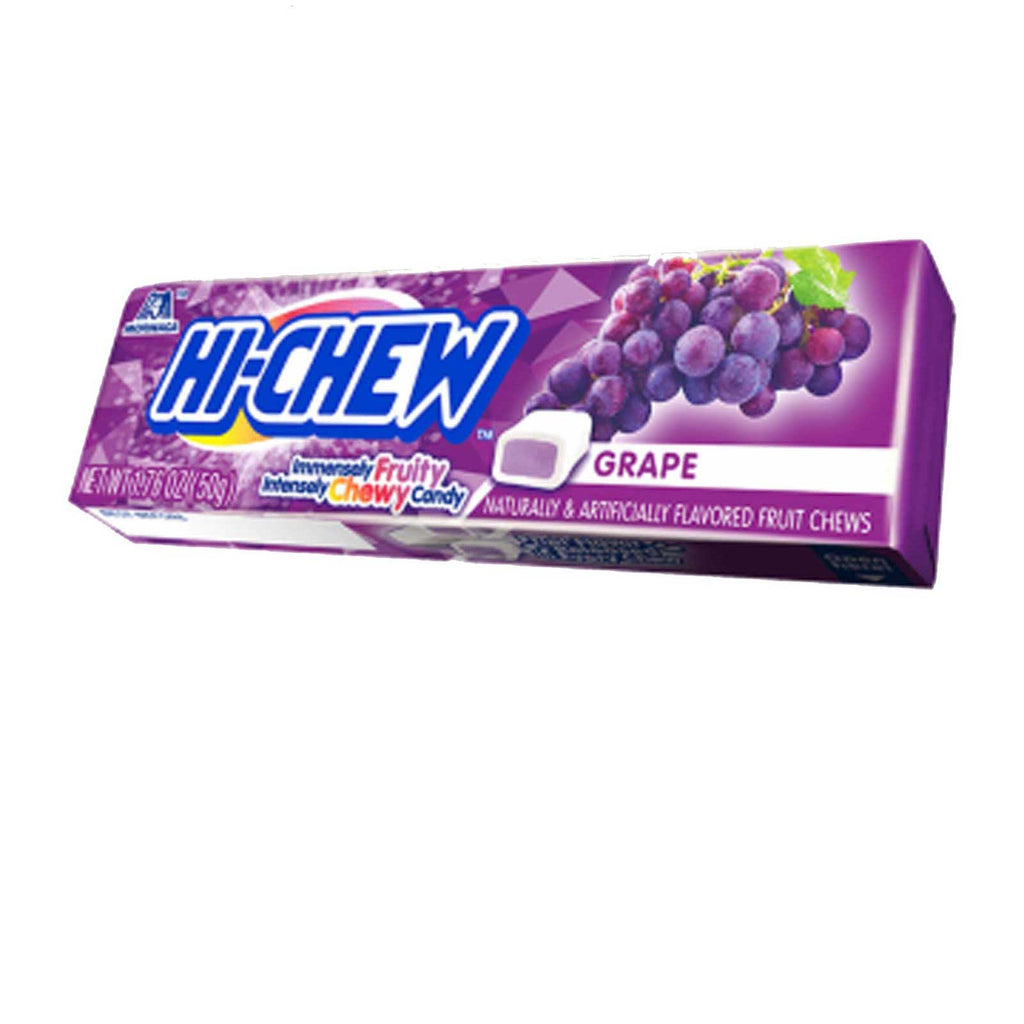 Hi-Chew - grape flavour. If you have never tried Hi-Chew before it is a chewy sweet which originated in Japan. It has an intense flavour and an unusual and unique consistency. Ten pieces per pack.