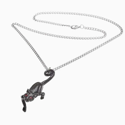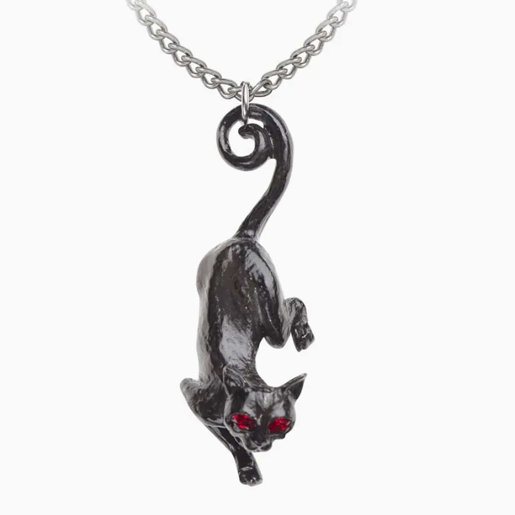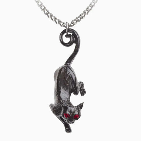 Cat necklace featuring a cat in black pewter with red, Austrian crystal eyes.