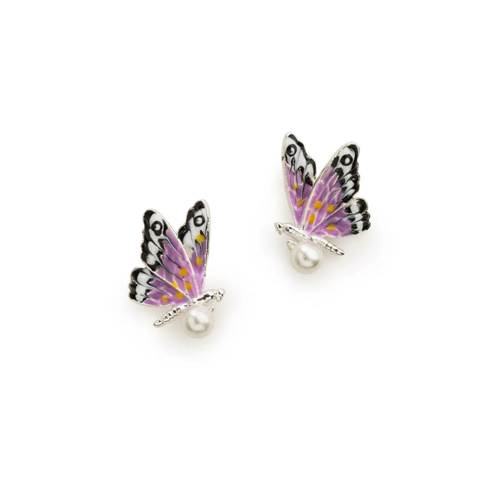 Hand-painted butterfly earrings with pearl drop accent.