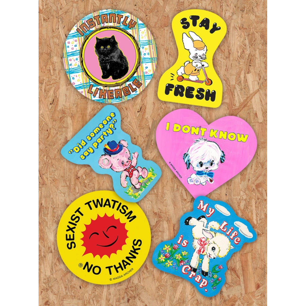 Set of 6 stickers designed by Magda Archer with a retro kitsch aesthetic.